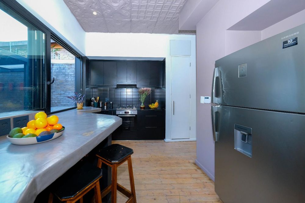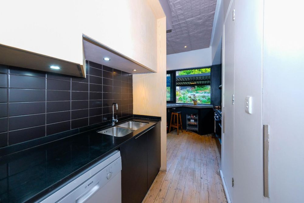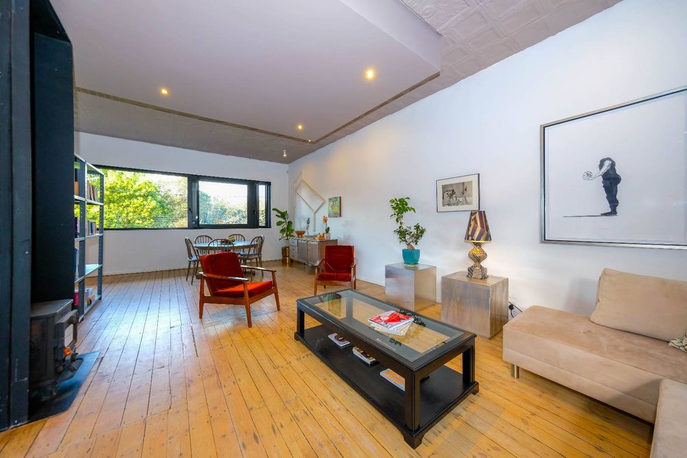 Seamlessly blending modernity, emphasising and incorporating its natural surroundings as part of your living experience. With immaculate attention to detail, bespoke fittings, custom aluminium windows and skylights with original wooden floors, up-cycled pressed ceilings, wood burning morso fireplace and a garden cultivated with indigenous plants, herbs and trees. A unique and beautifully balanced expression of city living and the natural world.