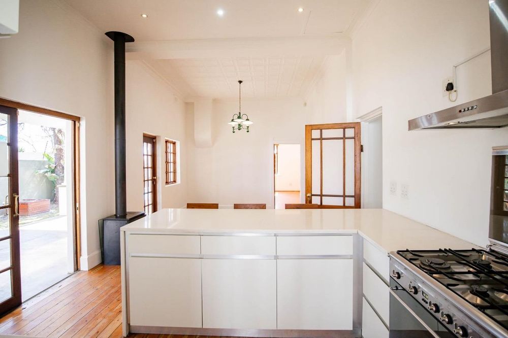 - Modern Caesarstone kitchen, Smeg gas stove and separate scullery