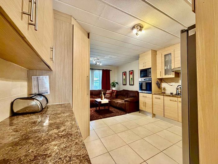 2 bedrooms, 1 bathroom, 61 m² floor size, 2000 m² land size, pool, braai area, 24/7 security in Delheim village.